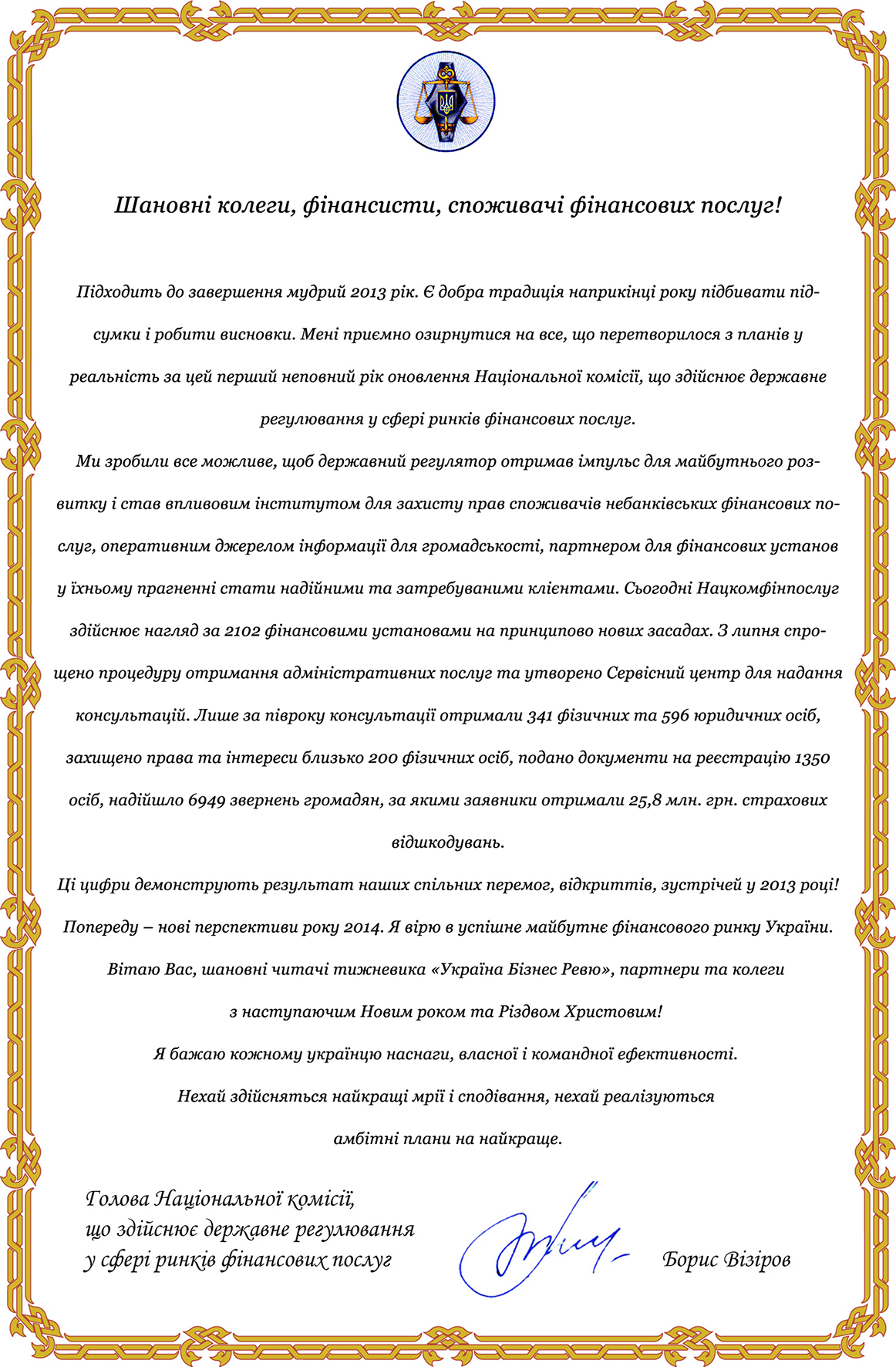 Привітання Голови Нацкомфінпослуг з Новім Роком