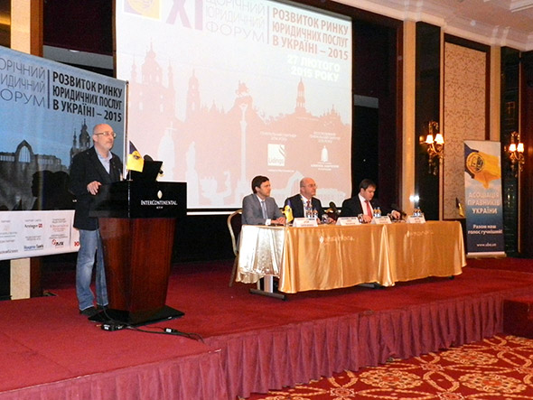 Сьогодні, 27 лютого, у готелі InterContinental відбувся ХI Щорічний юридичний форум «Розвиток ринку юридичних послуг в Україні - 2015». Він є невід’ємною складовою успішного початку року для керівників юридичних практик і власників юридичних фірм, директорів з розвитку бізнесу та всіх, хто цікавиться розвитком ринку юридичних послуг, аналітикою та практикою успішного ведення бізнесу.