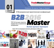 1 июля 2016г. в Киеве лучшие Тренеры и Бизнес-консультанты В2В-рынка Украины и СНГ традиционно представят эффективные практические инструменты в сфере продаж и управления, в рамках 6-ой Всеукраинской практической конференции «В2ВMaster-2016: ТОП-20 Лучших практик лидерства в управлении и продажах».