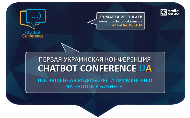29 марта 2017 года в Украине впервые состоится международная конференция, посвящённая чат-ботам, – ChatBot Conference UA. Это бизнес-событие пройдёт в Киеве и соберёт ведущих украинских и зарубежных экспертов отрасли.