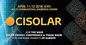 З 11 по 13 квітня 2018 р. у виставковому центрі «АККО Інтернешнл» (Київ) пройде наймасштабніший  у регіоні  галузевий бізнес-захід, присвячений індустрії сонячної енергетики  – 7-а Міжнародна Конференція та Виставка Сонячної Енергетики в Центральній та Східній Європі CISOLAR-2018 KYIV