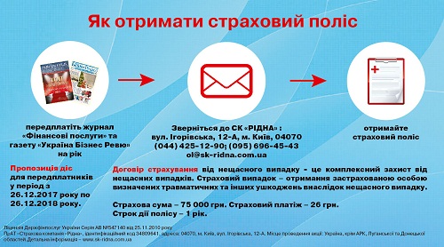 Эксклюзивные условия страхования от нашего партнера – Страховой компании «Ридна»: добровольное страхование от несчастного случая на год со страховой суммой 75 000 грн. за 26 грн.