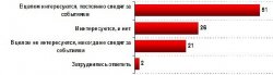 Каждый второй (51%) житель Украины интересуется событиями в России и постоянно следит за ними. Каждый четвертый и интересуется, и нет. 21% украинцев утверждают, что не интересуются и никогда не следят за событиями в России.