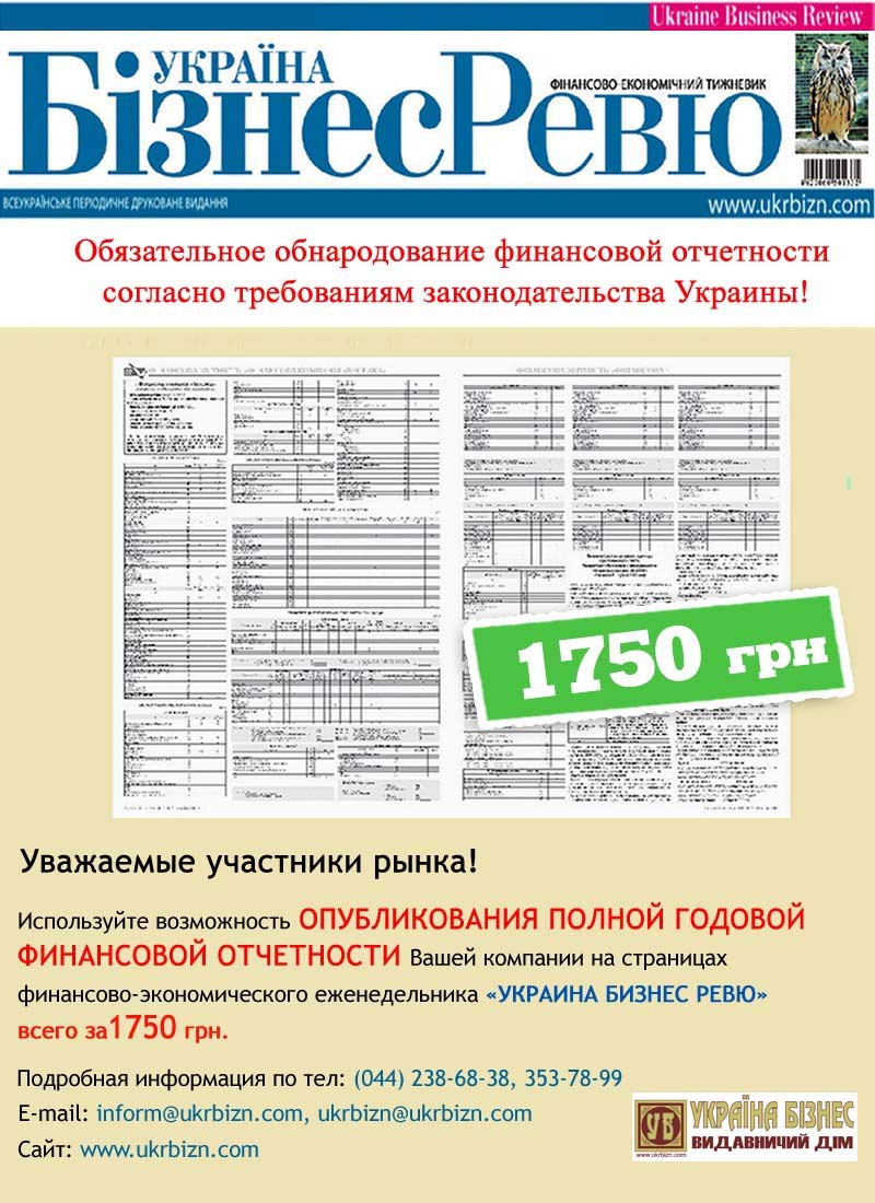 2. Публикация годовой финансовой отчетности и аудиторского заключения в газете «Украине Бизнес Ревю» для Вашей компании